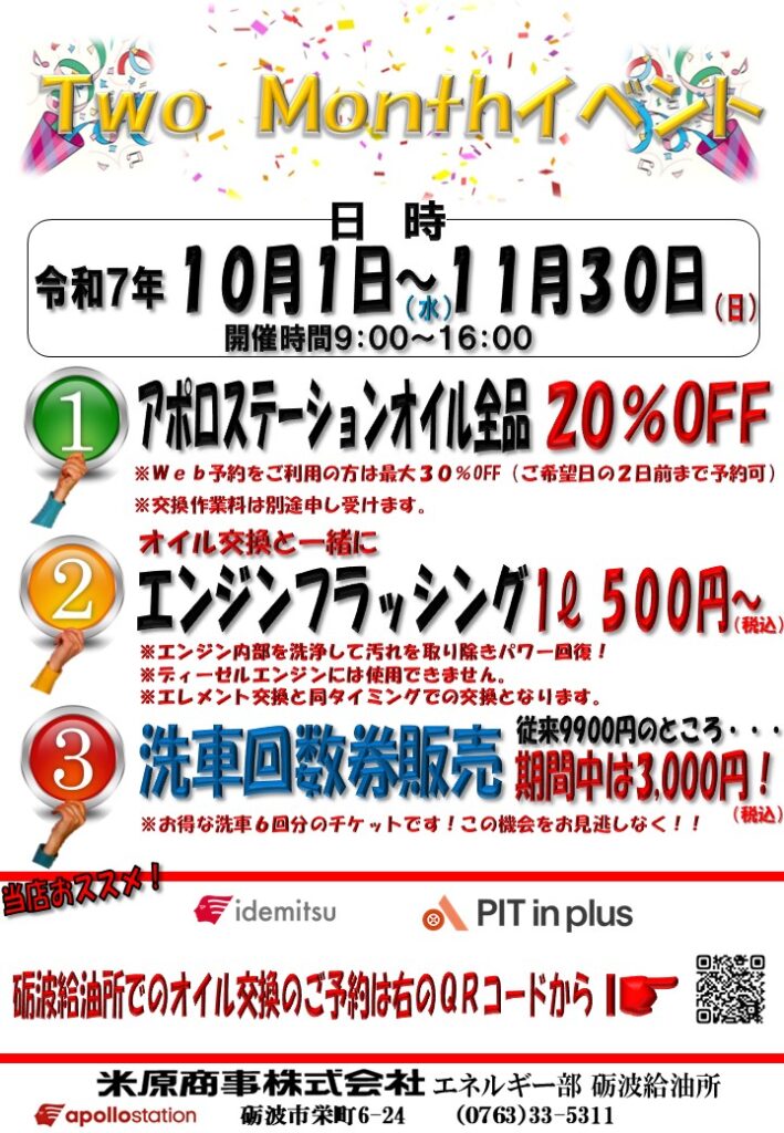 令和7年 10月1日(水)~11月30日(日) Two Monthイベント